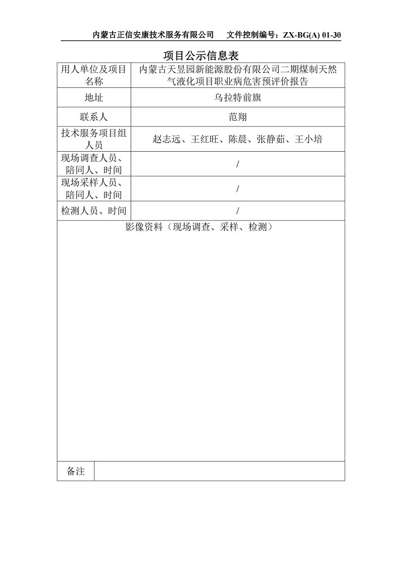 內(nèi)蒙古天昱園新能源股份有限公司二期煤制天然氣液化項(xiàng)目職業(yè)病危害預(yù)評(píng)價(jià)報(bào)告-項(xiàng)目公示信息表
