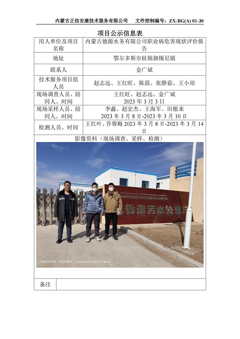 內(nèi)蒙古德源水務(wù)有限公司職業(yè)病危害現(xiàn)狀評價報告-項目公示信息表_