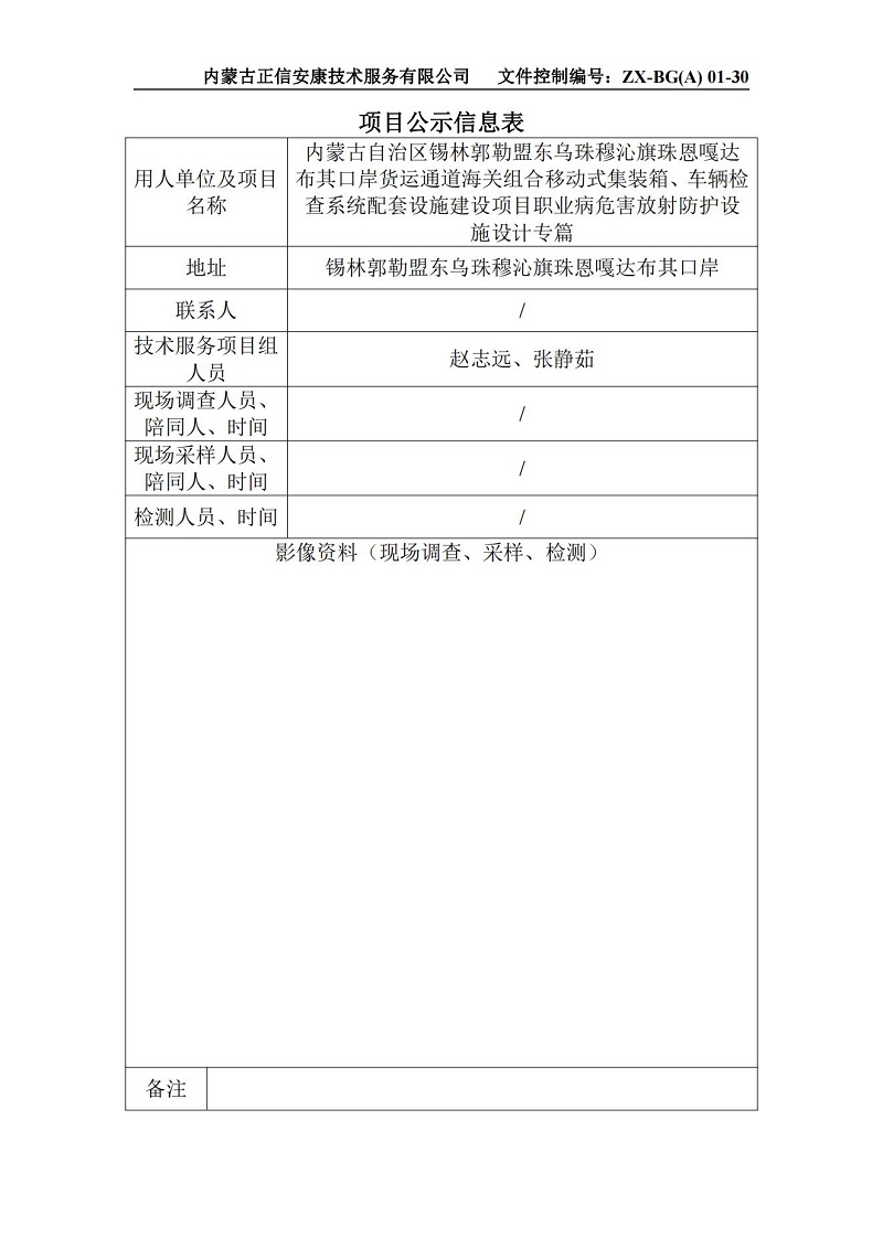 內(nèi)蒙古自治區(qū)錫林郭勒盟東烏珠穆沁旗珠恩嘎達布其口岸貨運通道海關(guān)組合移動式集裝箱、車輛檢查系統(tǒng)配套設(shè)施建設(shè)項目職業(yè)病危害放射防護設(shè)施設(shè)計專篇-項目公示信息