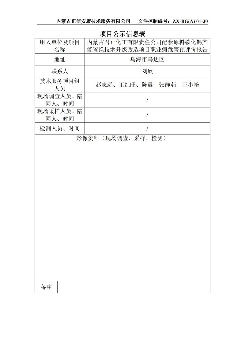 內(nèi)蒙古君正化工有限責(zé)任公司優(yōu)化原料配比節(jié)能環(huán)保技改項(xiàng)目職業(yè)病危害預(yù)評價報(bào)告-項(xiàng)目公示信息表
