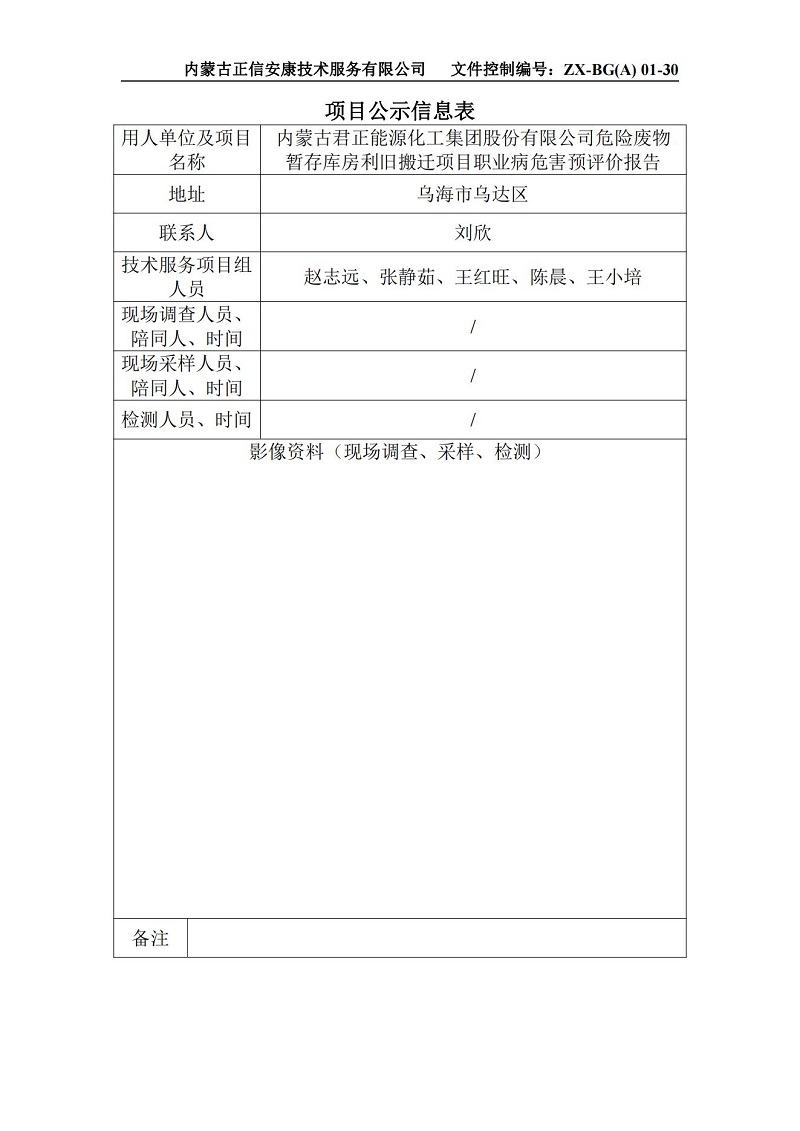 內(nèi)蒙古君正能源化工集團(tuán)股份有限公司危險(xiǎn)廢物暫存庫(kù)房利舊搬遷項(xiàng)目職業(yè)病危害預(yù)評(píng)價(jià)報(bào)告-項(xiàng)目公示