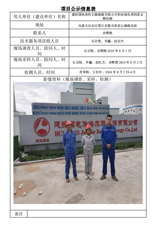 建投國(guó)電準(zhǔn)格爾旗能源有限公司職業(yè)病危害因素定期檢測(cè)