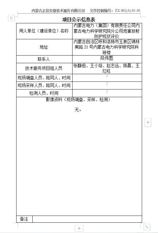 內(nèi)蒙古電力(集團)有限責(zé)任公司內(nèi)蒙古電力科學(xué)研究院分公司 職業(yè)病危害放射防護現(xiàn)狀評價