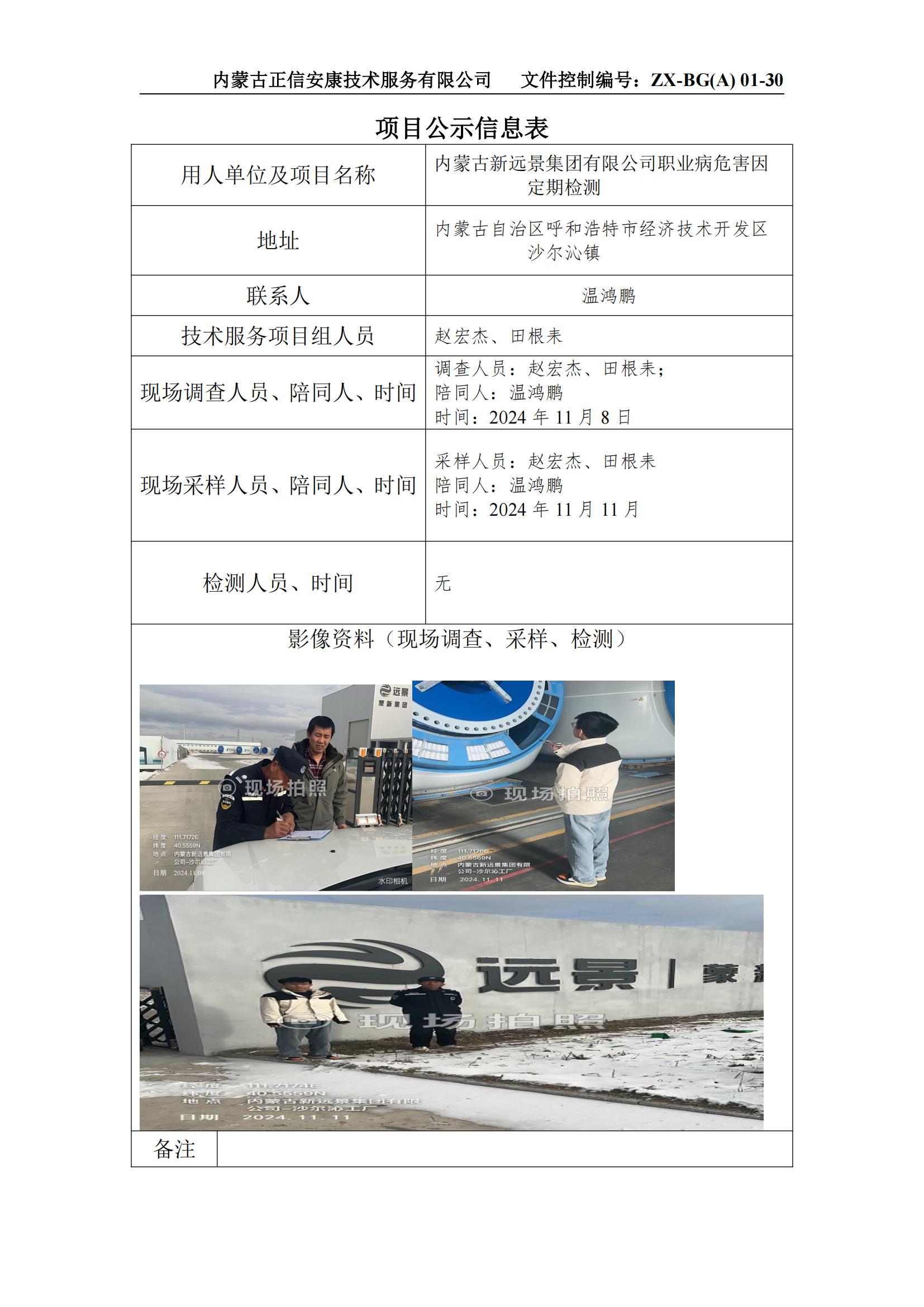 內(nèi)蒙古新遠(yuǎn)景集團(tuán)有限公司職業(yè)病危害因定期檢測(cè)