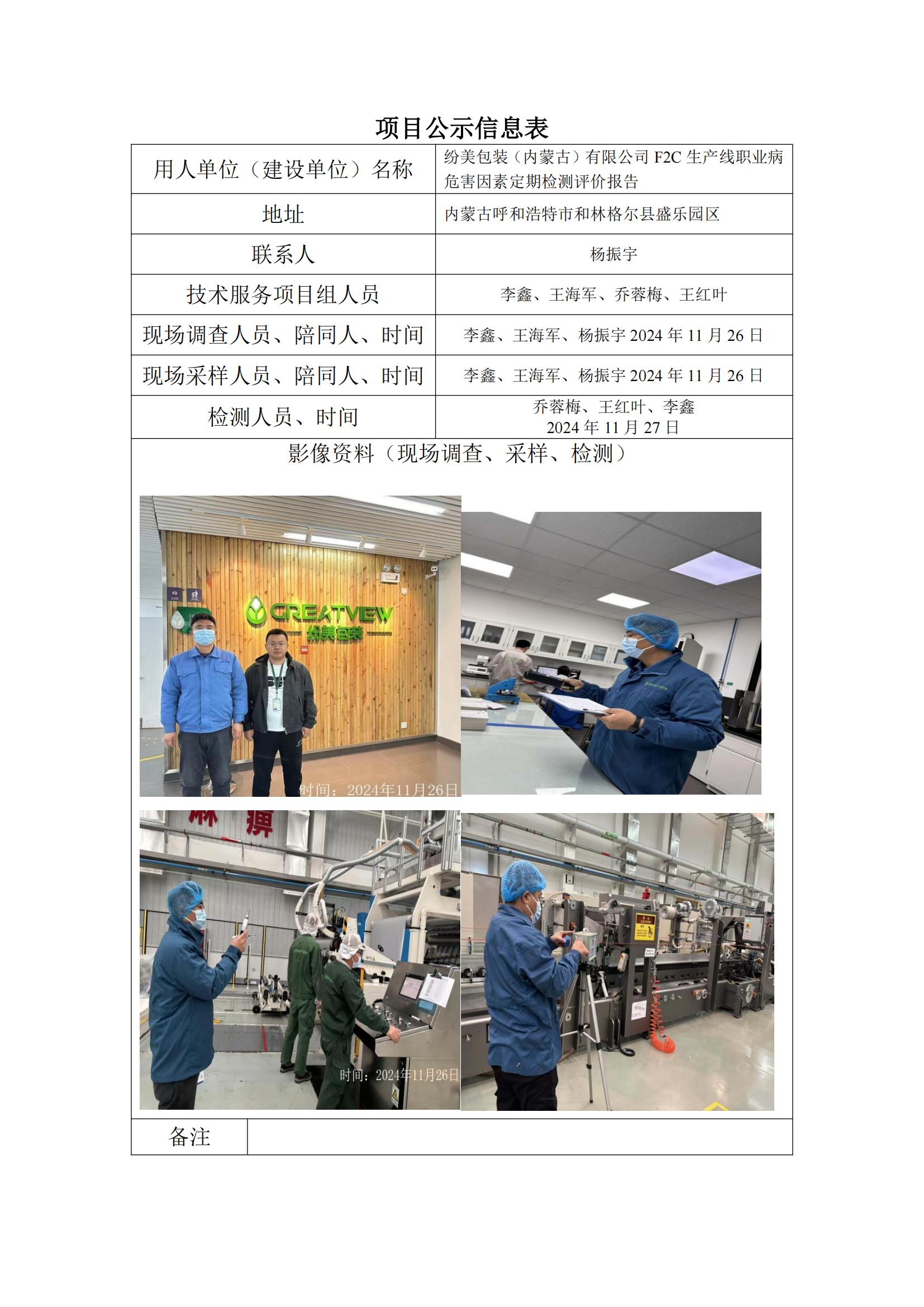 紛美包裝(內(nèi)蒙古)有限公司 F2C 生產(chǎn)線職業(yè)病 危害因素定期檢測評價報告