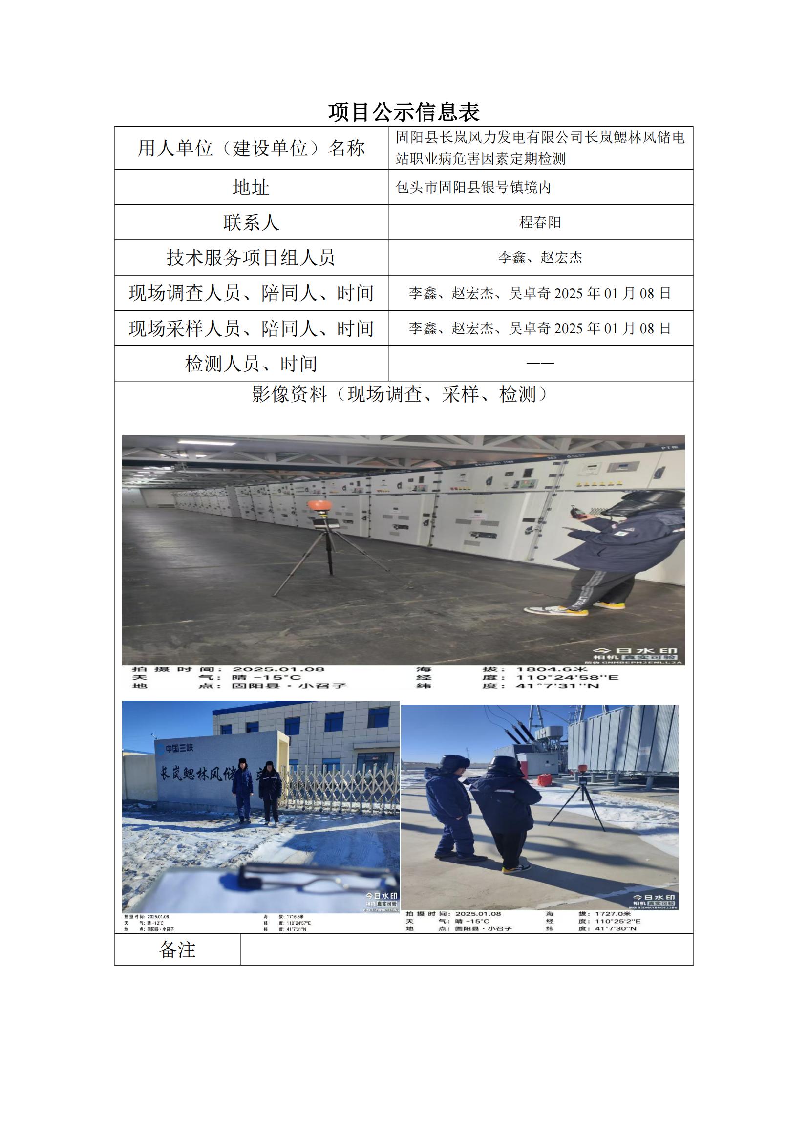 固陽縣長嵐風(fēng)力發(fā)電有限公司長嵐鰓林風(fēng)儲(chǔ)電 站職業(yè)病危害因素定期檢測