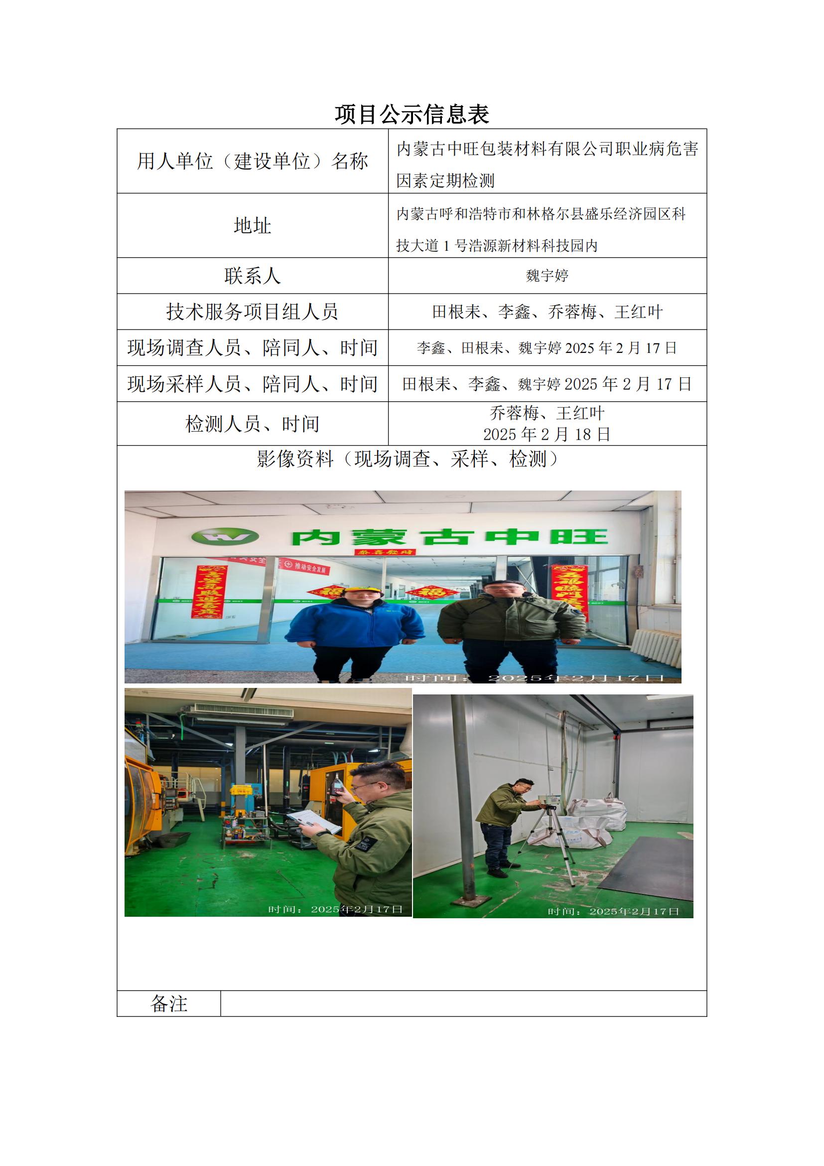 內(nèi)蒙古中旺包裝材料有限公司職業(yè)病危害因素定期檢測(cè)