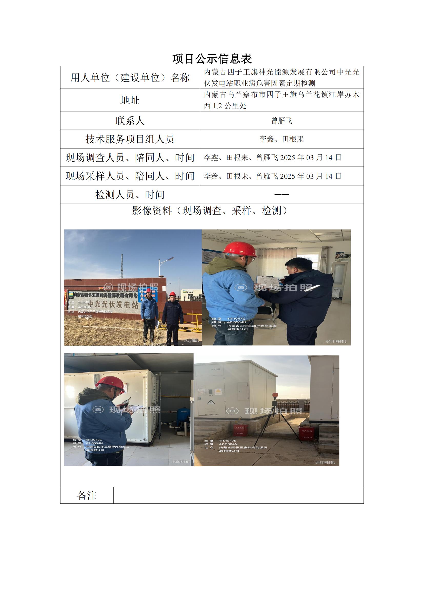 內(nèi)蒙古四子王旗神光能源發(fā)展有限公司中光光伏發(fā)電站職業(yè)病危害因素定期檢測
