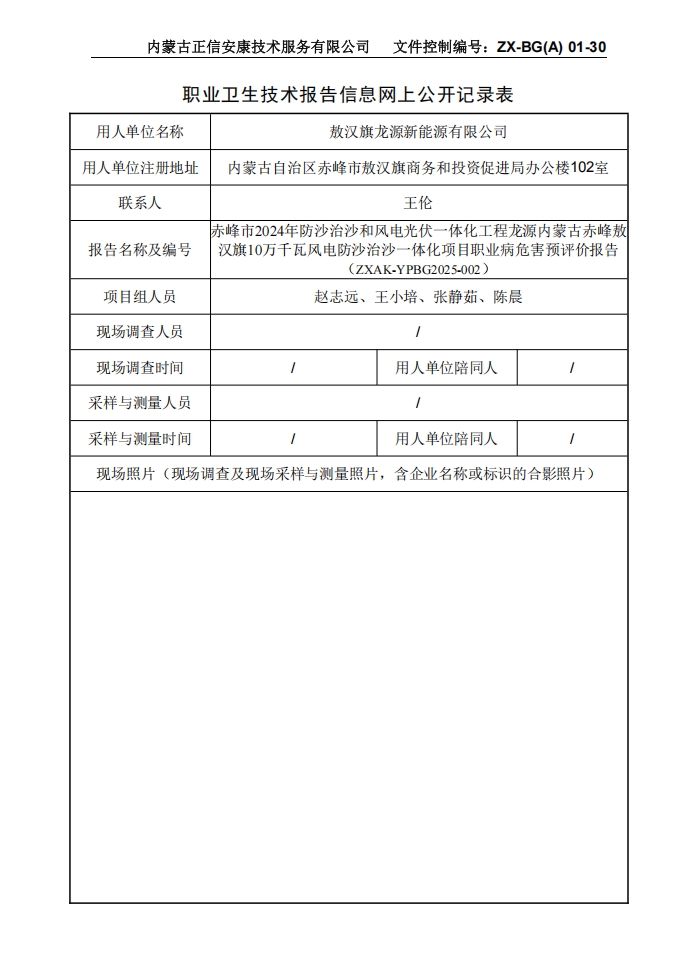 赤峰市2024年防沙治沙和風(fēng)電光伏一體化工程龍源內(nèi)蒙古赤峰敖漢旗10萬千瓦風(fēng)電防沙治沙一體化項目職業(yè)病危害預(yù)評價報告 -