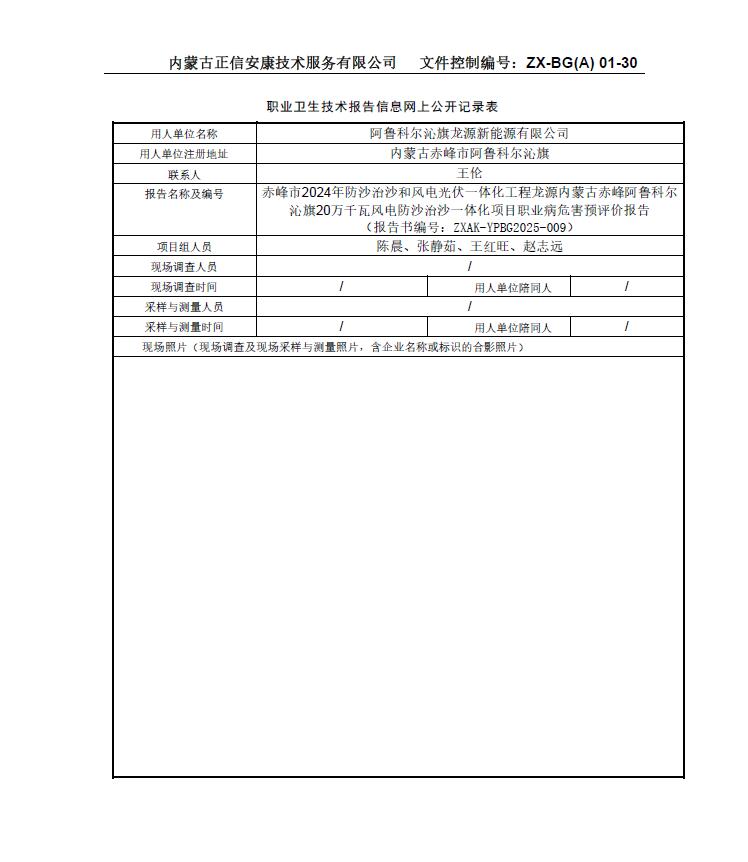 赤峰市2024年防沙治沙和風(fēng)電光伏一體化工程龍?jiān)磧?nèi)蒙古赤峰阿魯科爾沁旗20萬千瓦風(fēng)電防沙治沙一體化項(xiàng)目職業(yè)病危害預(yù)評(píng)價(jià)報(bào)告