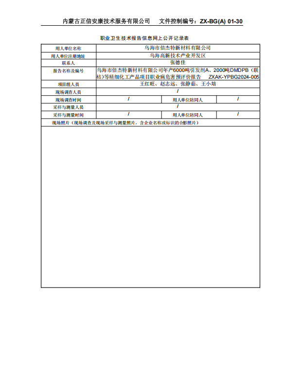 烏海市倍杰特新材料有限公司年產(chǎn)6000噸引發(fā)劑A、2000噸DMDPB(聯(lián) 枯)等精細(xì)化工產(chǎn)品項目職業(yè)病危害預(yù)評價報告