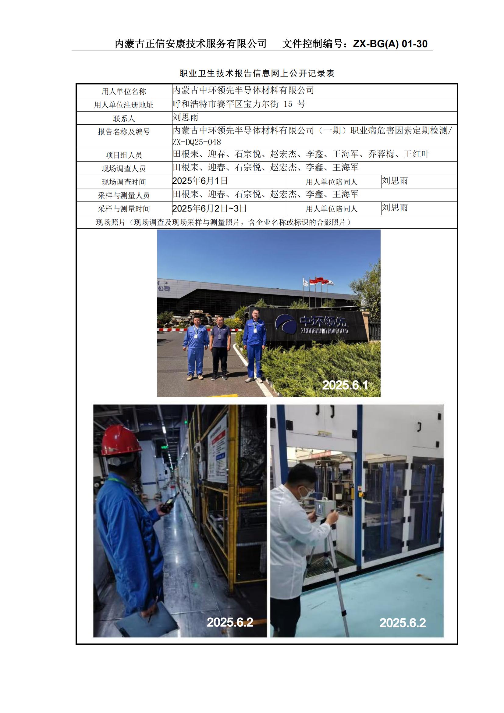 內(nèi)蒙古中環(huán)領(lǐng)先半導體材料有限公司(一期)職業(yè)病危害因素定期檢測