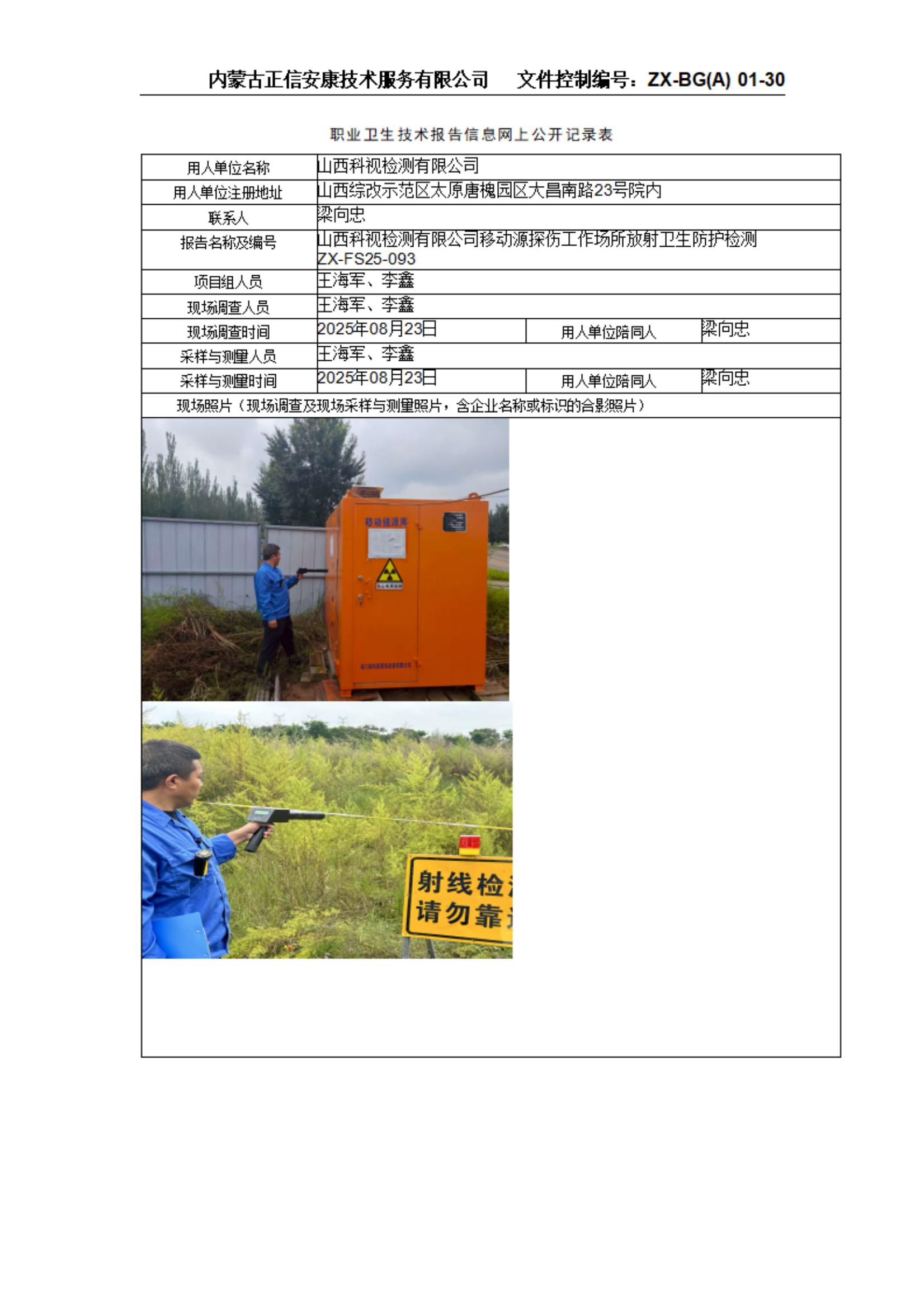 山西科視檢測(cè)有限公司移動(dòng)源探傷工作場(chǎng)所放射衛(wèi)生防護(hù)檢測(cè)